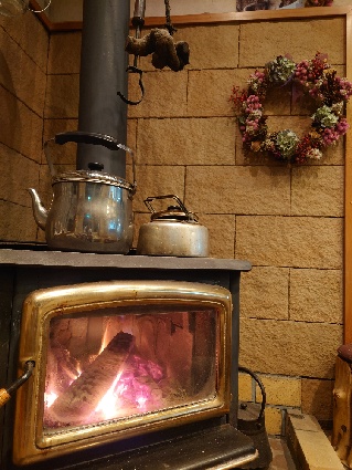 宿の中は暖炉の火でチロチロと夜が更けていく。